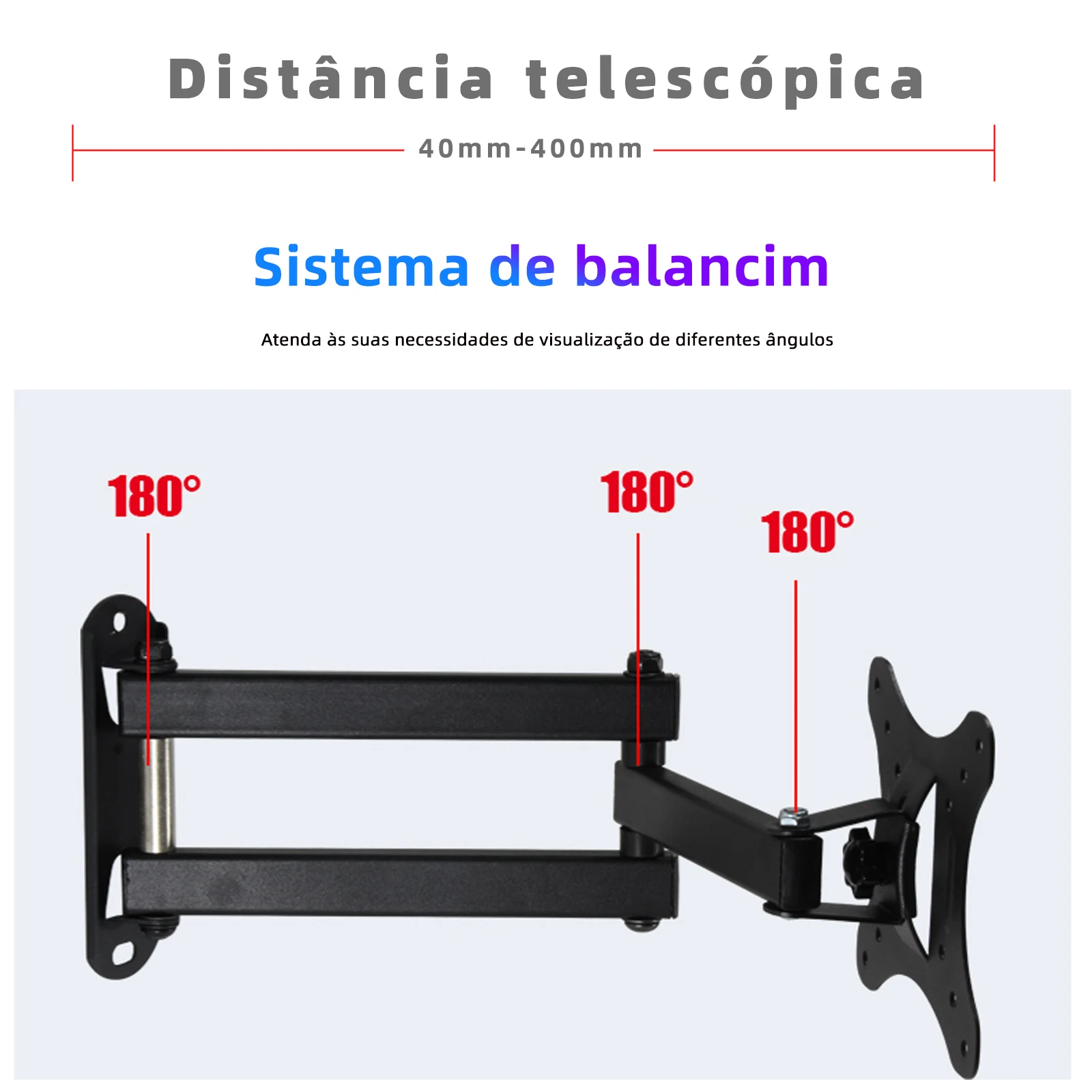 Suporte articulado para TV de até 50 polegadas.