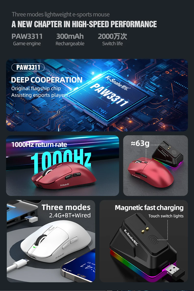 Sensor model: Pixart 3311 (12000 DPI|300 IPS|35G)