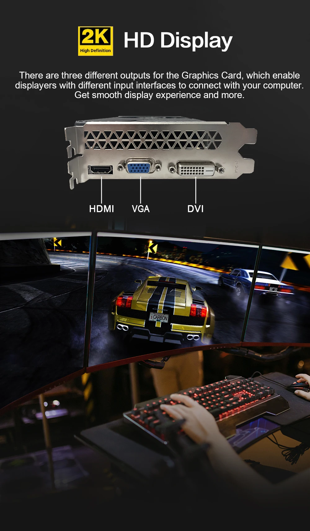 There are three different outputs for the Graphics Card, which enable displayers with different input interfaces to connect with your conputer.